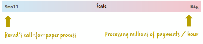 For example, one of our customers implements a process that must be able to process two million payments per hour. This is definitely a big scale and poses different requirements compared to the management of my handful of talks a month. Foremost, the chosen technology must be able to handle the targeted scale and also help you navigate failure scenarios at scale; for example, if a core system faces an outage and thousands of process instances need to be retriggered once it comes up again.
