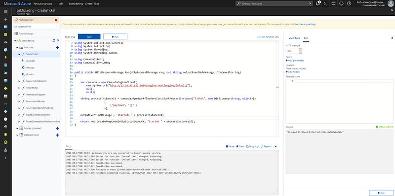 And what I really liked when doing the exercise is the Azure web environment, where you can see all resources clearly arranged and easily develop and change your function and re-test it: